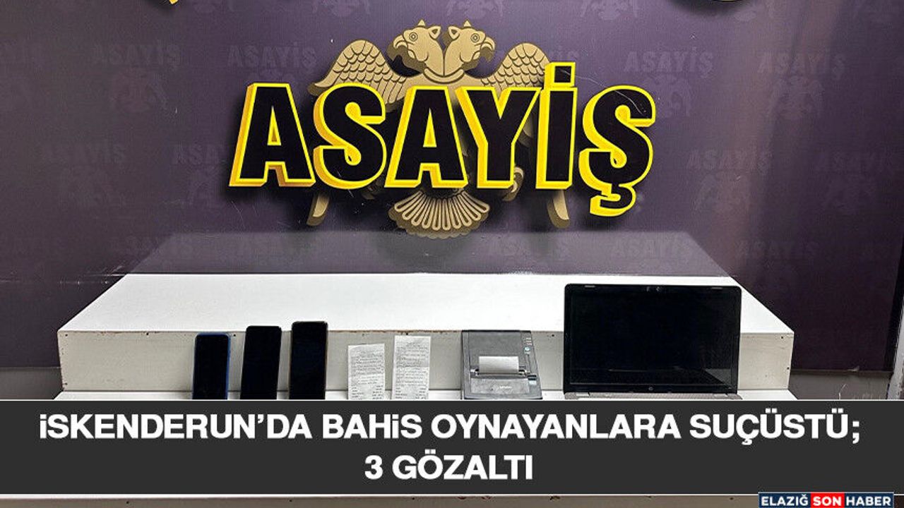Hatay Emniyet Müdürlüğü görevlilerince yasa dışı bahis oynanmasını önlemeye yönelik çalışmalarda: İskenderun genelinde yapılan çalışmada Yenişehir Mahallesinde faaliyet gösteren isimsiz işyerinde bahis oynandığı ihbarı üzerine adreste bulunan F.B., L.B.K. ile C.B. adlı3 kişi yakalanarak gözaltına alındı.