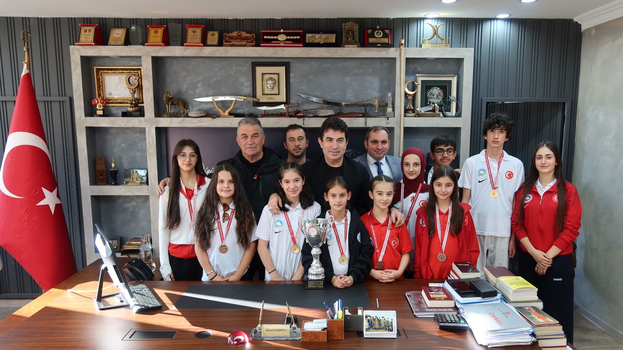 İspir Belediye Başkanı Ahmet Coşkun'da başarılı sporcuları makamında misafir ederek, hediye verip tebrik etti.