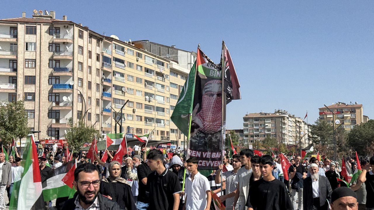 ELAZIĞ (AA) - İsrail'in Gazze ve Küresel Sumud Filosu'na yönelik saldırıları Elazığ'da düzenlenen 'Gazze Kararlılık Yürüyüşü ve Aksa Tufanı Mitingi' ile protesto edildi.