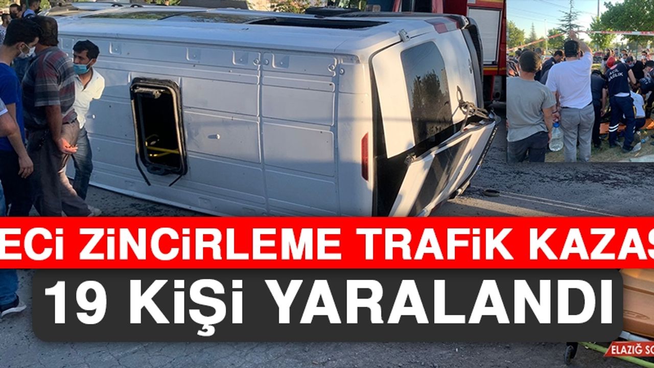 Kazada minibüs yan yatarken, araçlarda bulunan toplamda 19 kişi yaralandı.