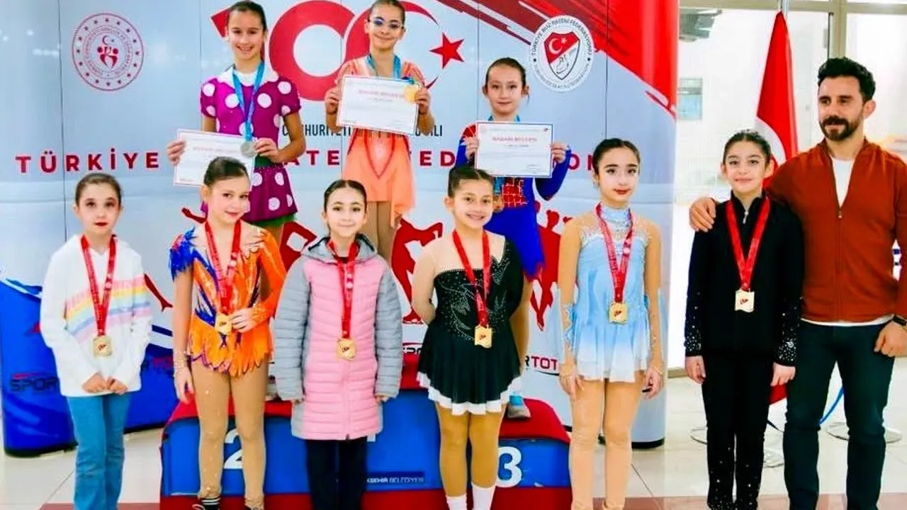 İzmir Büyükşehir Belediyesi Spor Kulübü sporcuları Bornova Aşık Veysel Buz Sporları Salonu’nda düzenlenen Artistik Buz Pateni Bölge Yarışması’nda toplam 7 madalya kazandı.İZMİR (İGFA) - Türkiye Buz Pateni Federasyonu tarafından düzenlenen, İzmir Büyükşehir Belediyesi Buz Sporları Salonu'nun ev sahipliği yaptığı Artistik Buz Pateni 2. Bölge Yarışması tamamlandı. Organizasyonda İzmir, Ankara ve Samsun’da faaliyet gösteren 18 kulüpten 89 sporcu mücadele etti. İzmir Büyükşehir Belediyesi Spor Kulübü, Cubs-2 kategorisinde altın madalyanın sahibi olan Nesil Kılınçlı ile birlikte toplamda 7 madalya kazandı.