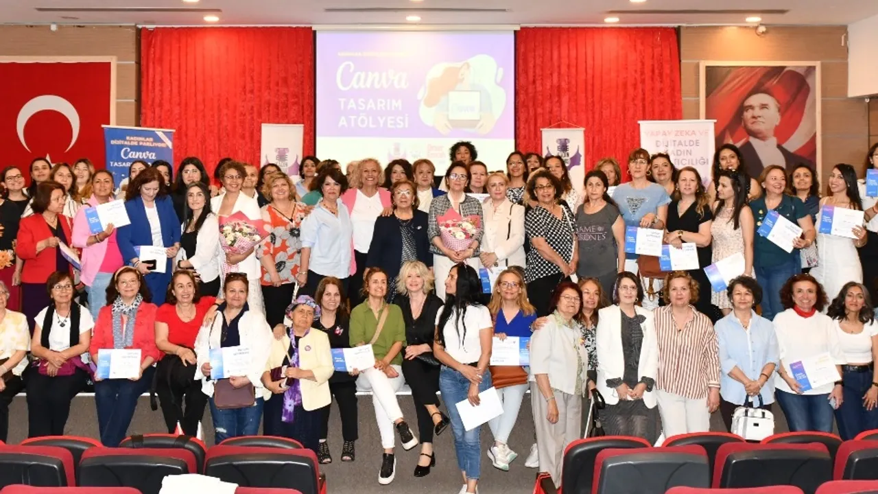 İzmir Çiğli Belediyesi ile Ege Kadın Buluşması Platformu iş birliğinde hayata geçirilen “Kadınlar Dijitalde Parlıyor” projesi kapsamında düzenlenen eğitim programını başarıyla tamamlayan 159 kadın sertifikalarını aldı.İZMİR (İGFA) - İzmir, Uşak, Aydın ve Muğla’dan kadınların katıldığı eğitim, Prof. Dr. Nermin Abadan Unat Kadın Yaşam Merkezi’nde gerçekleştirildi. Eğitim sürecinde katılımcılara grafik tasarım ve içerik üretimi konularında temel beceriler kazandıran Canva programı öğretildi. Proje, kadınların dijital yetkinliklerini artırarak girişimcilik ve yaratıcılık alanlarında güçlenmelerini amaçladı.