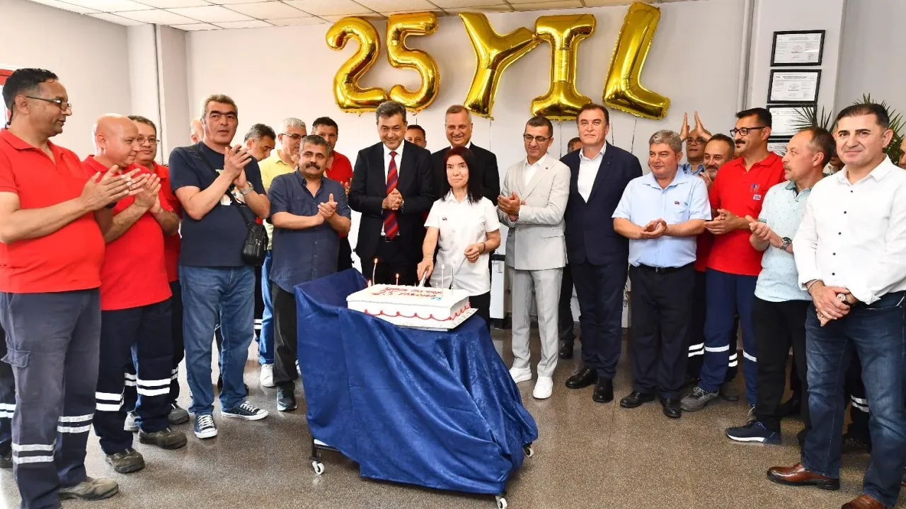 Çeyrek asırda 1 milyar 717 milyonu aşkın yolcu taşıyan İzmir Metro AŞ’nin 25. yaşı Halkapınar’da bulunan Genel Müdürlük Binası’nda kutlandı. 25. yıl pastasının kesildiği kutlamaya İzmir Metro AŞ Yönetim Kurulu Başkanı ve İzmir Büyükşehir Belediyesi Raylı Sistemler Dairesi Başkanı Alpaslan Kara, İzmir Metro AŞ Genel Müdürü Ahmet Sinan Karakuzu, yönetim kurulu üyeleri ve çalışanlar katıldı. Törende 25 yılını dolduran personele sertifika ve üzerinde 2000’li yıllarda metroda kullanılan jetonların bulunduğu seramikten plaket takdim edildi.