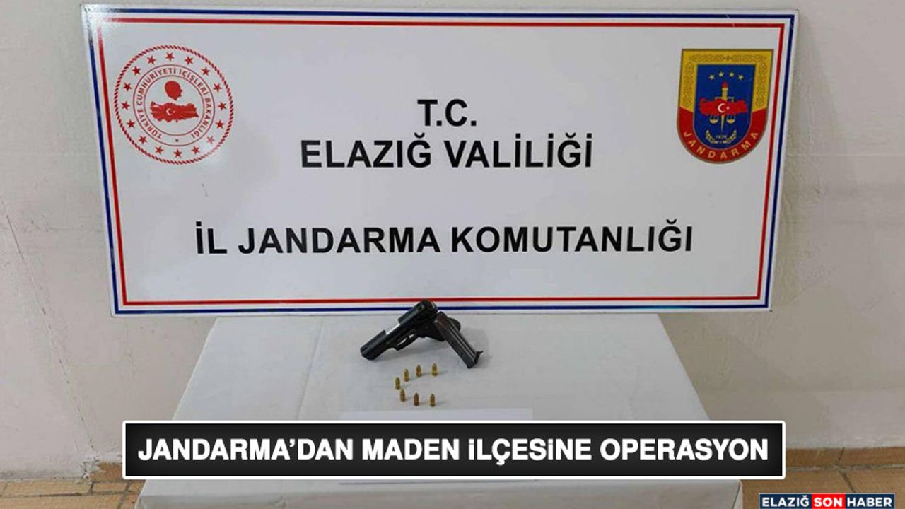 Maden İlçe Jandarma Komutanlığı tarafından icra edilen operasyon kapsamında çeşitli miktarlarda uyuşturucu madde, ruhsatsız tabanca ve 7 adet fişek ele geçirildi.