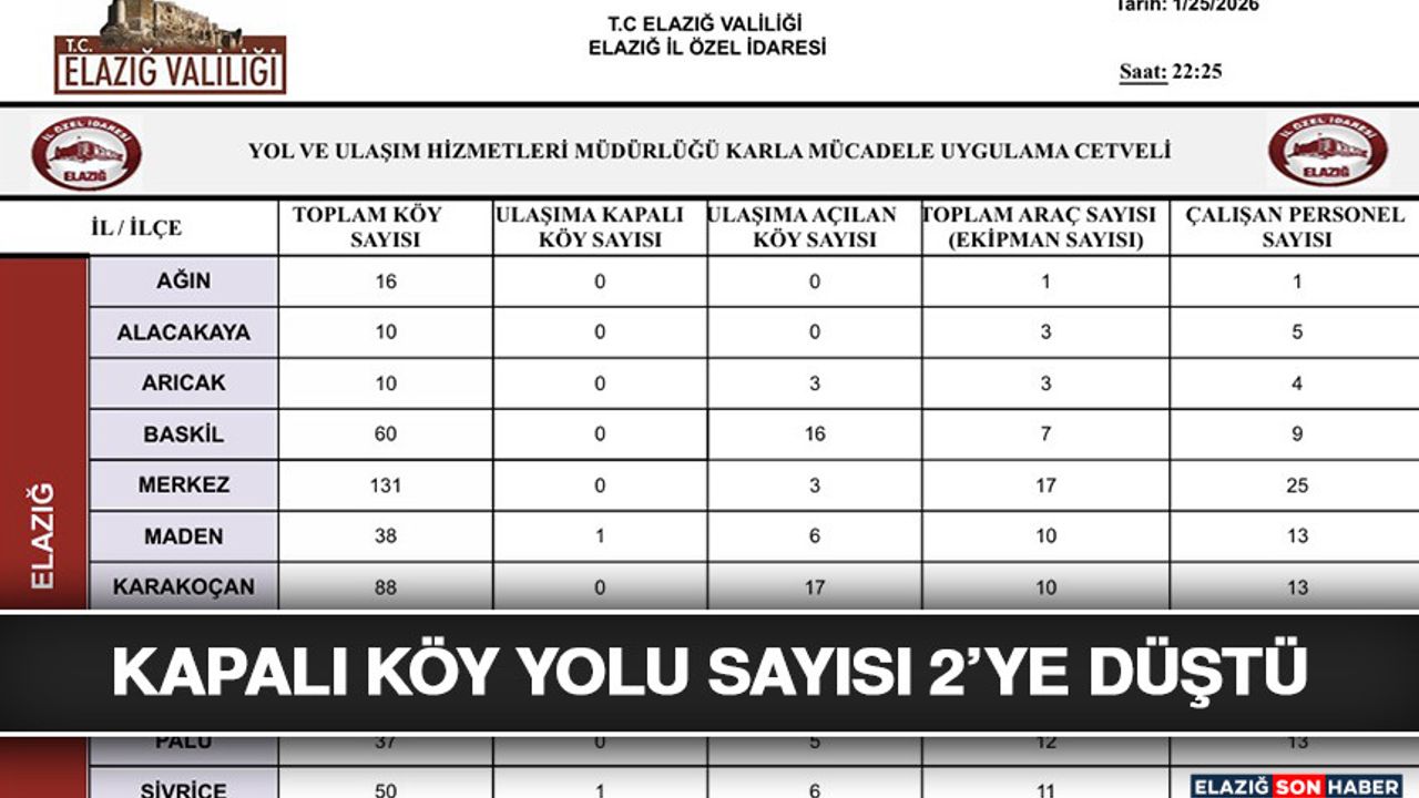 Etkili olan olumsuz hava koşulları sebebiyle ulaşıma kapanan 65 köy yolunda, ekipler iş makineleriyle kar temizleme çalışması yürütmeye devam ediyor. Yapılan hummalı çalışmalar neticesinde 63 köy yolu yeniden araç trafiğine açılırken, ulaşıma kapalı kalan köy yolu sayısı an itibarıyla 2’ye düştü.