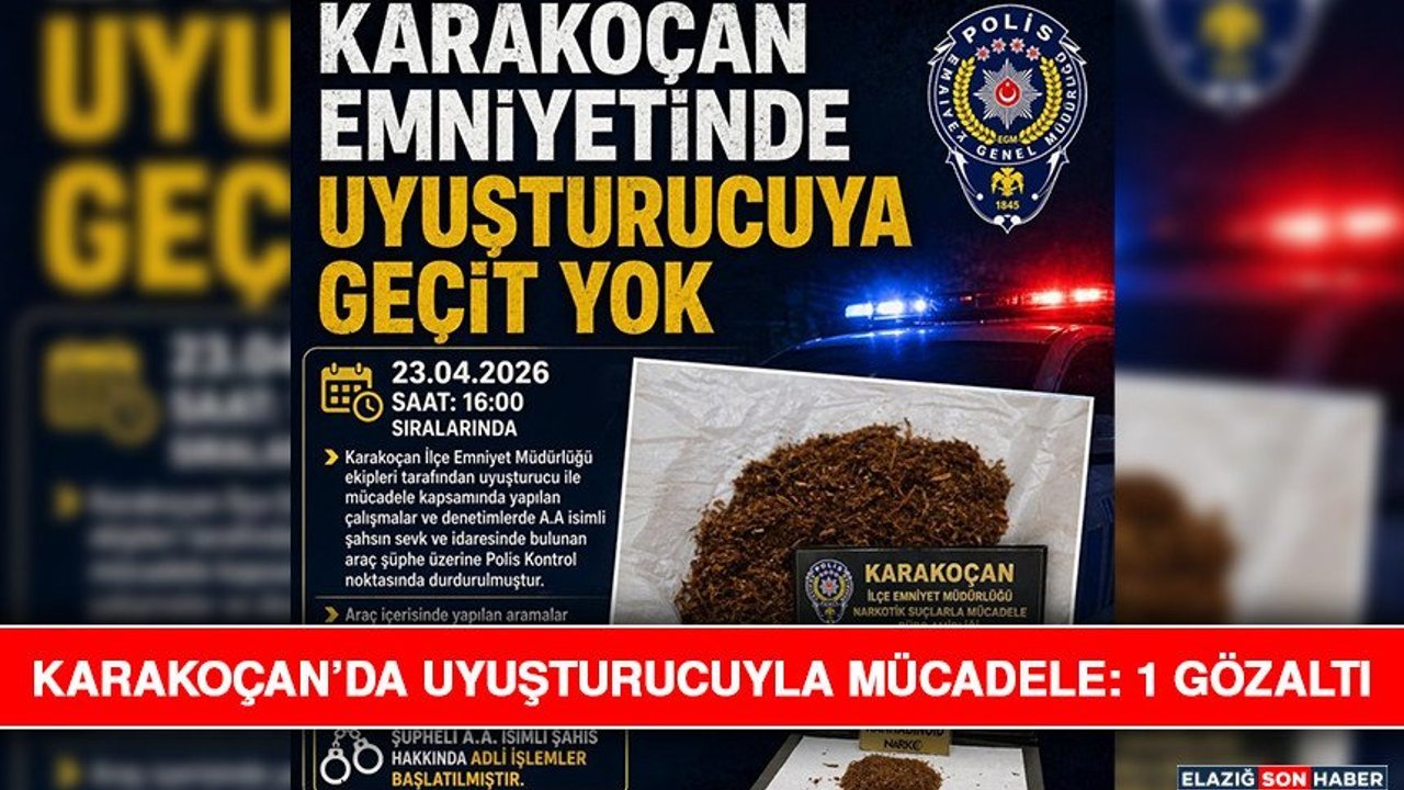 Edinilen bilgiye göre, Karakoçan ilçesinde, uyuşturucu ile mücadele kapsamında İlçe Emniyet Müdürlüğü ekiplerinin çalışması aralıksız sürüyor. Bu çerçevede yürütülen çalışmalar ve denetimler sırasında şüpheli bir araç durduruldu. Araçta yapılan aramalarda tütüne emdirilmiş vaziyette 43,17 gram kannabinoid uyuşturucu madde ele geçirildi. Gözaltına alınan şüpheli A.A. hakkında yasal işlem başlatıldığı bildirdi.