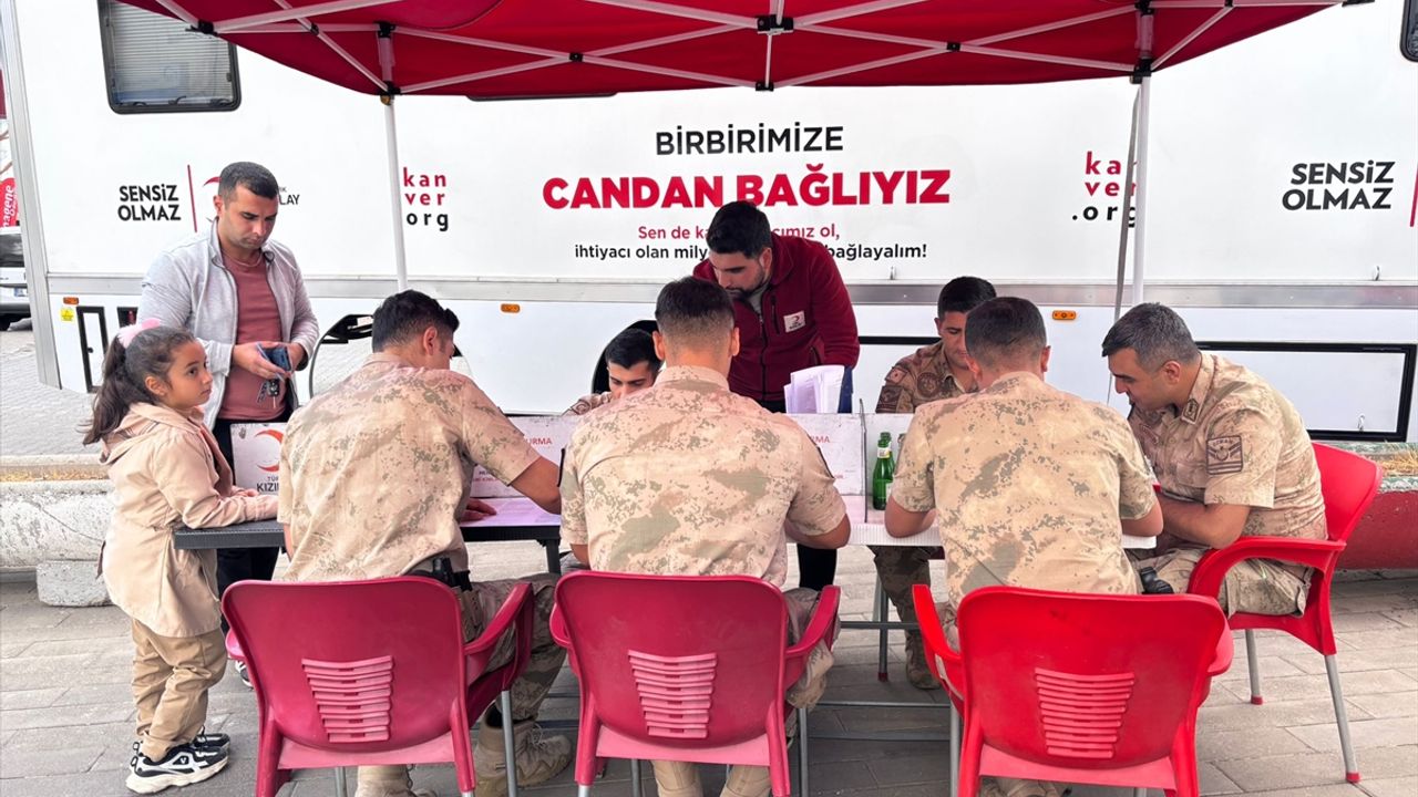 Karlıova Belediyesi önünde kurulan Kızılay Kan Bağışı Merkezine gelen jandarma personeli, 'Birbirimize candan bağlıyız' sloganıyla düzenlenen kampanya kapsamında kan bağışı yaptı.