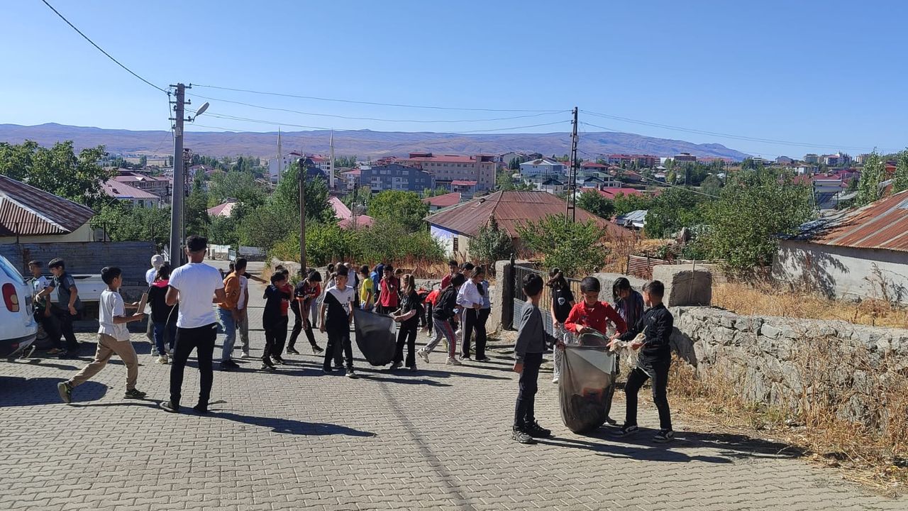 Çalışma kapsamında Karlıova Meslek Lisesi ile Toklular Ortaokulu öğrencileri, okullarının çevresindeki çöpleri topladı.