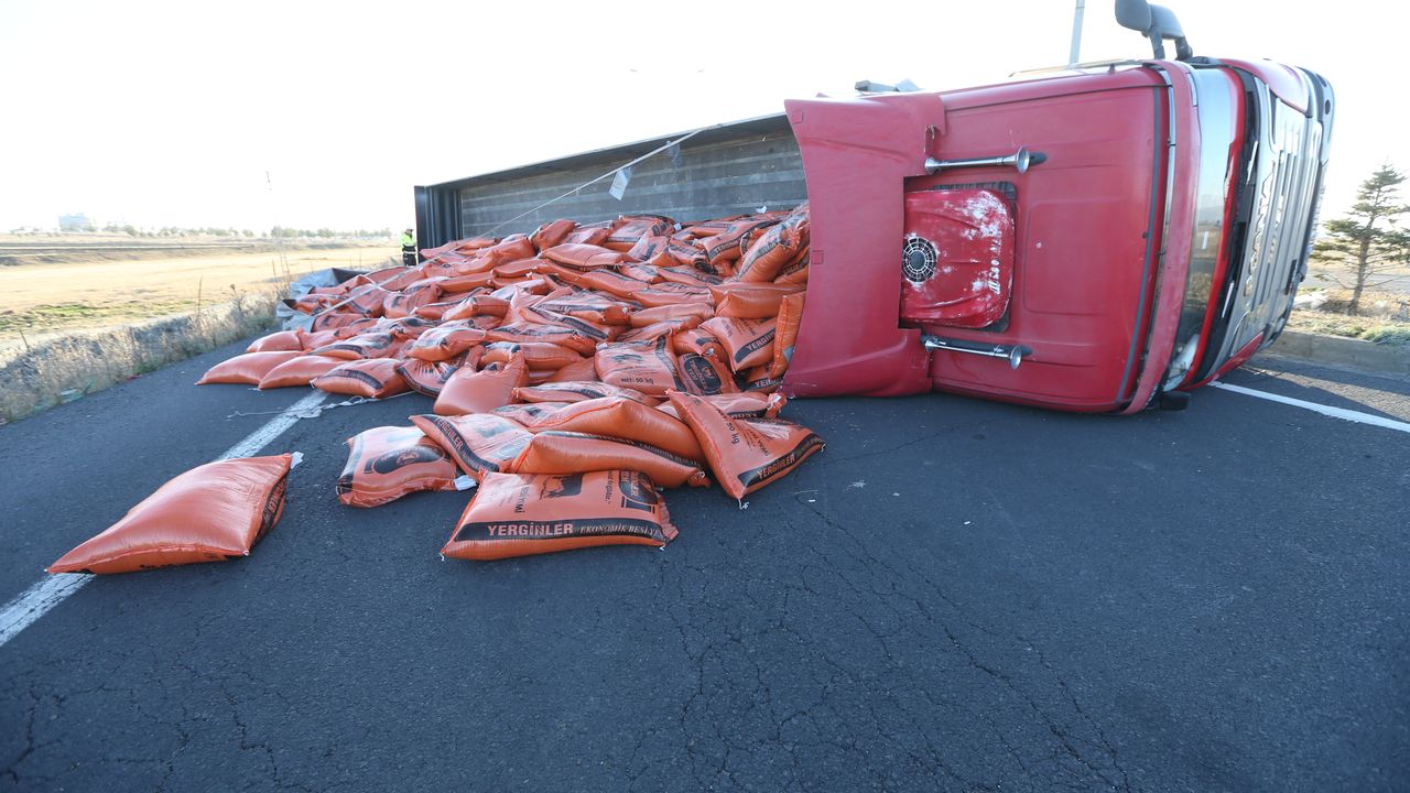 Abdullah Ç. (22) idaresindeki 16 NIN 78 plakalı yem yüklü tır, Kars-Ardahan kara yolu Asri Mezarlık mevkisinde devrildi.