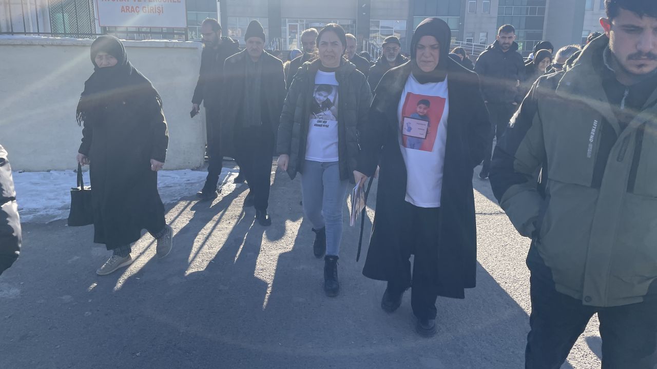 Erdağ ailesine bazı vatandaşlar da adliye bahçesine gelerek destek verdi, katılımcılardan bazıları 'Cennet kuşu Muhammed Poyraz' yazılı tişörtler giydi.