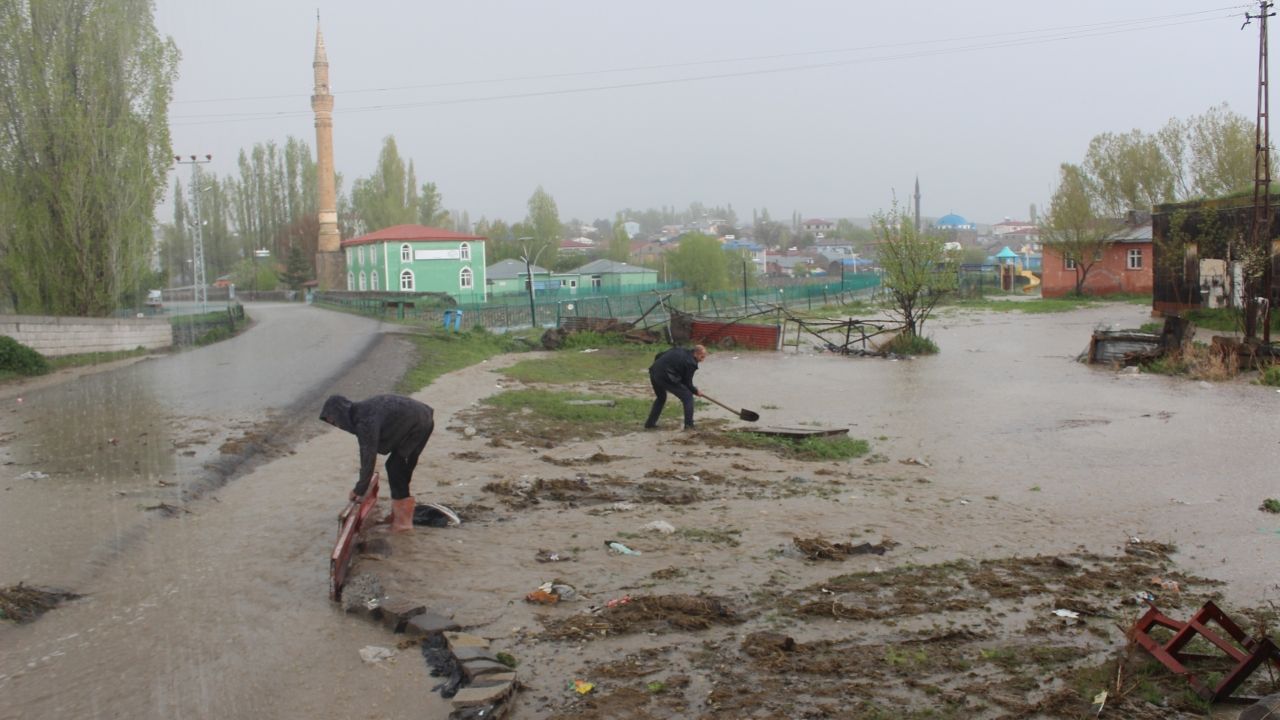 KARS (AA) - Kars'ta sağanak ve dolu nedeniyle bazı ev ve iş yerlerini su bastı.