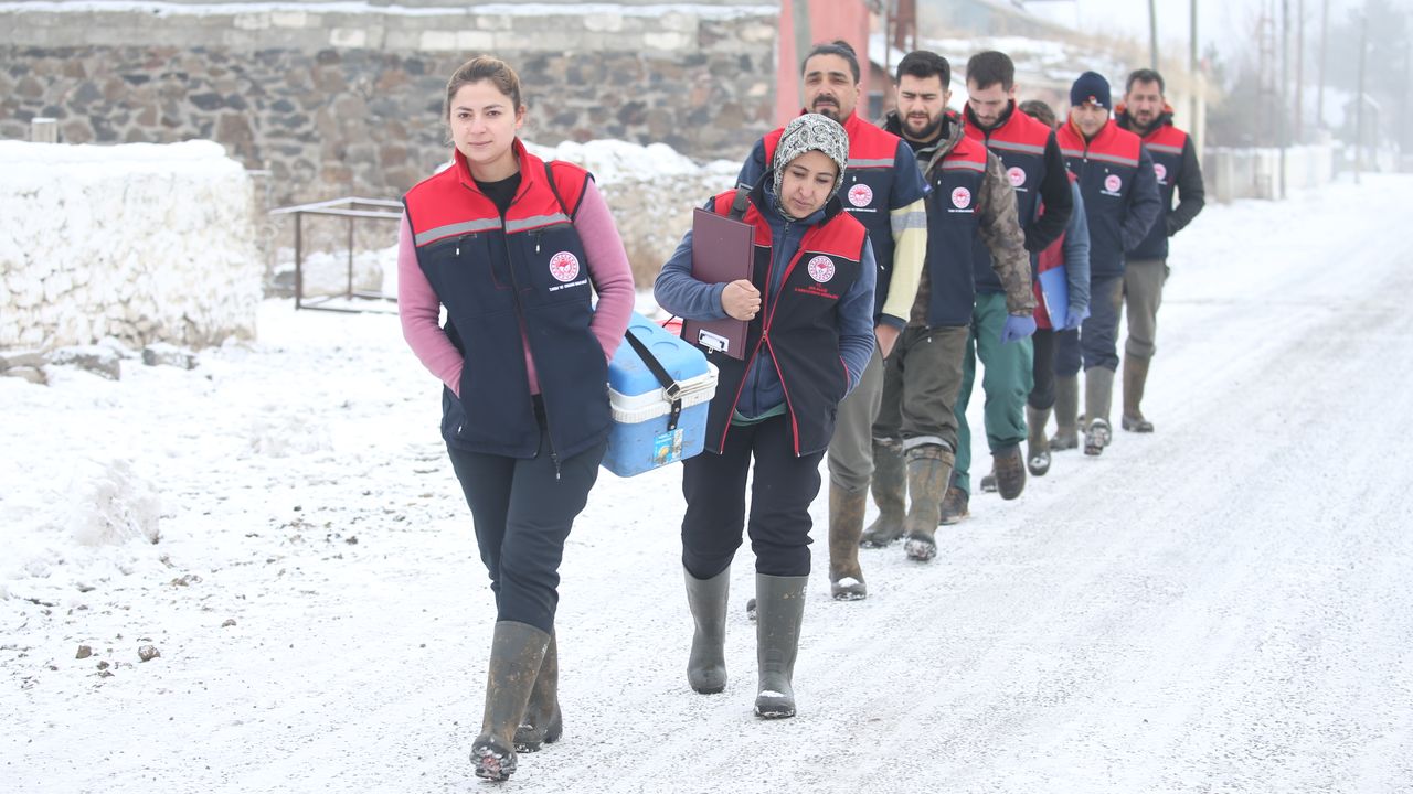 Kar, kış, yağmur ve çamur demeden bazen hayvanlara ulaşmak için dondurucu soğukta karlı ve zorlu arazileri aşmak zorunda kalan veteriner hekimler, bulaşıcı hastalıklara karşı aşılama çalışmalarını aksatmıyor.