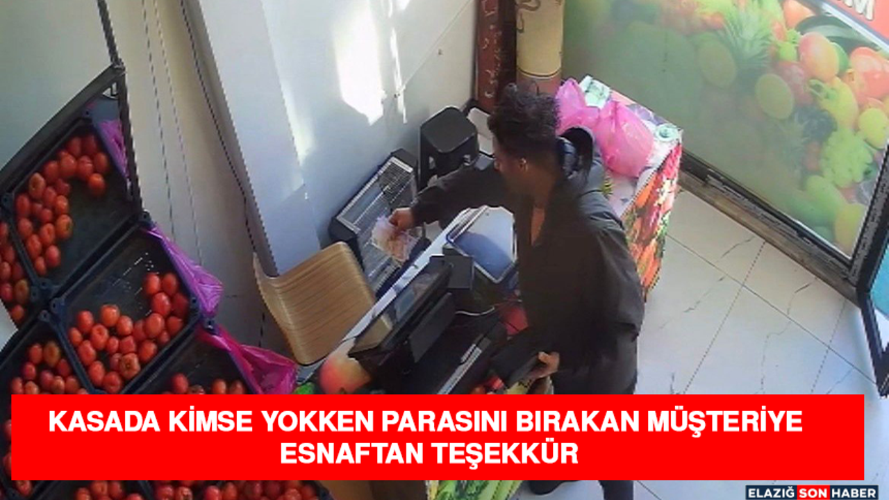 Elazığ'ın Doğukent Mahallesi'nde bir manavda kimse bulunmadığı sırada gelen müşteri, ürünlerin parasını hesaplayıp kasanın yanına bıraktı. O anlar güvenlik kamerasına yansırken, manav personeli yaşananları anlattı.
