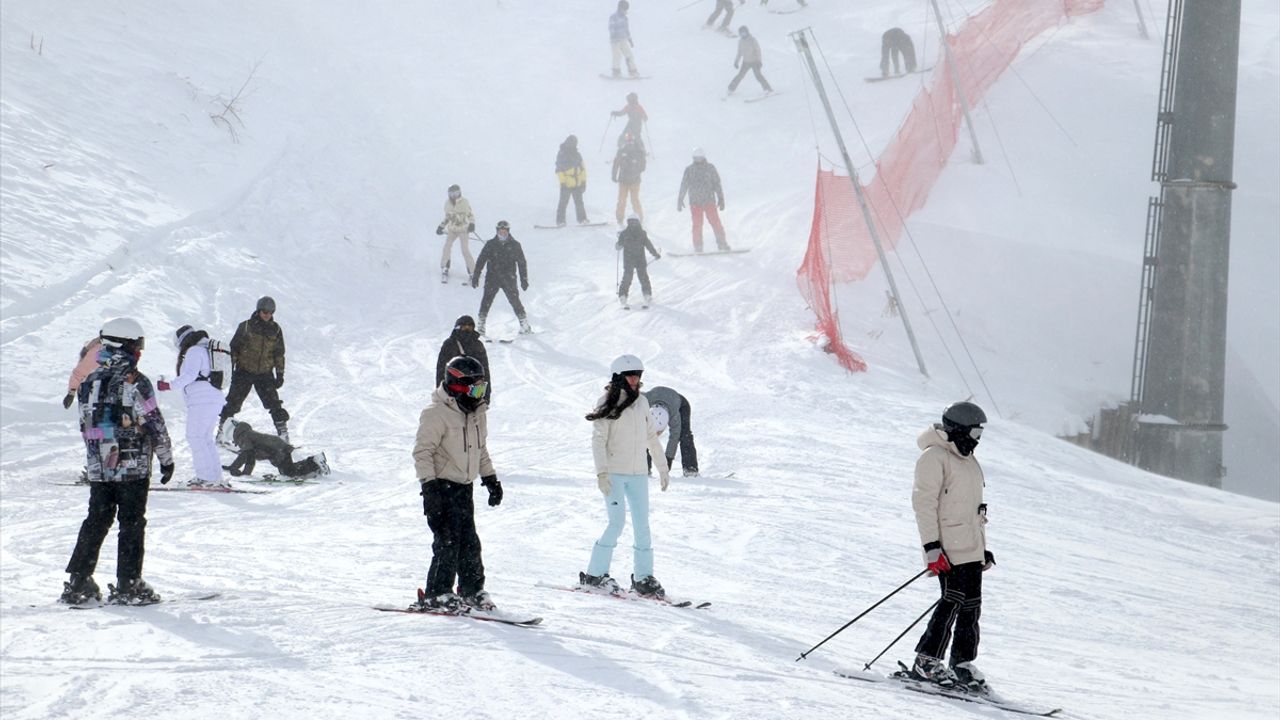 Hava sıcaklığının sıfırın altında 2 derece ölçüldüğü ve kar kalınlığının 135 santimetreyi bulduğu merkeze gelenler, yeni yılın ilk gününde kayak yapmanın keyfini yaşıyor.