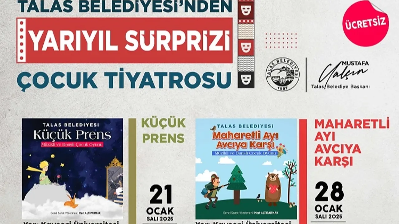 KAYSERİ (İGFA) - Çocuklara ve gençlere yönelik projeleriyle dikkat çeken  Kayseri Talas Belediyesi bunlara bir yenisini daha ekledi. Çocuklara okulların kapandığı yarıyıl tatilinde dinlenmesi ve eğlenmesi için farklı bir program düzenleyen belediyede ilk olarak Küçük Prens müzikli ve danslı çocuk oyunu gösterimi olacak. 21 Ocak 2025 Salı günü gerçekleşecek tiyatro oyunu saat 14.00’te başlayacak.