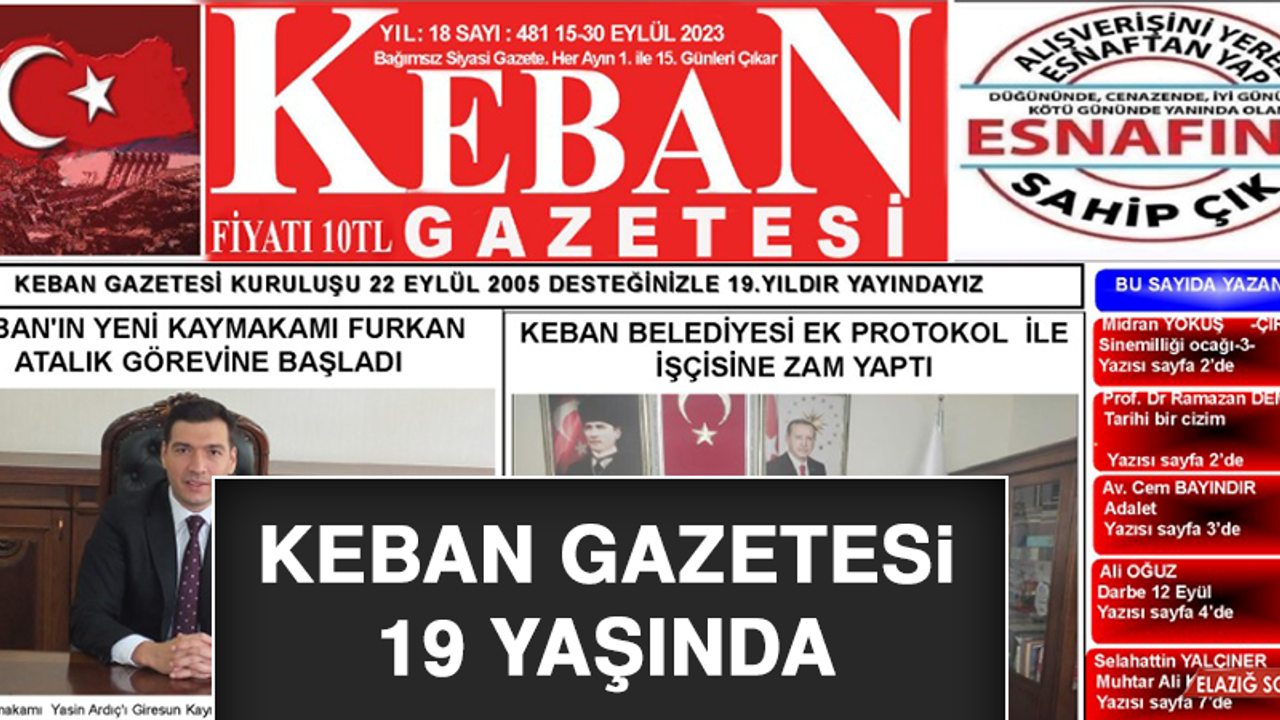 2022 yılından bu yana her ayın 1’inci ve 15’inci günü yayınlandıklarını ifade eden Keban Gazetesi Genel Yayın Yönetmeni Pirhasan Doğan, “Her zaman dile getirdiğimiz gibi Keban Gazetesi siz değerli okurlarımızın desteği ile bugünlere geldi. Yayın hayatına 22 Eylül 2005 yılında başlayan Gazetemiz vefakâr okurlarının büyük desteği ile 19. Yılına girdi.. - Sizlerden aldığımız güç ve destekle, Keban’ın sorunlarına çözüm üretmeye ve gündeme getirmeye çalıştık. Doğruluktan ve yayın politikamızdan ödün vermedik. Menfaat için çıkmadık. Menfaatler peşine koşmadık. Doğru bildiğimizi yazdık. Doğru bildiğimizi yaptık... Kebanlılar sıkıntılarını paylaşacak, dert ortağı olacak bir gazete istiyordu... Gazetesinde haber istiyordu; doğru, akılcı, mantıklı haber... Gazetesinde yorum istiyordu... Kendisiyle yabancı olmayan, kendi fikirleriyle eş değer ama kendisine yol gösteren... Gazetesinde kardeşlik bağlarını, üstün ahlak anlayışını, gelenek-göreneğe saygıyı, insanlara sevgiyi görmek istiyordu... Gazetesinde hoşgörü istiyordu... Kebanlı böyle bir gazete istiyordu; Karalamayan, yaralamayan, hak edene hakkını veren bir gazete... Düşünüldü, konuşuldu, tartışıldı ve karar verildi... “Kebanlının istediği olacak” denildi... Tarih; 22 Eylül 2005... Keban gazetesi yayın hayatına haftalık olarak başladı... Gazetemiz yazarları ile birlikte Geceleri gündüzlere, gündüzler gecelere katıldı.. Uykusuzluk hiçe sayıldı... Her çıkan sayıda bir gün önceki uykusuzluk unutuldu... Kebanlı artık, gazete okuyordu... Yazılar, haberlerle Keban’daki olaylardan artık haberdar oluyordu... Yazarların yorumlarını okuyarak mutlu oluyordu. Günler geçti... Haftalar ve aylar geçti... Keban Gazetesi ayni hacim ve aynı güçle yürüdü yolunda... Yılmadı... Yorulmadı... 19. yaşındayız... Tarih 22 Eylül 2022 hala her ayın 1. ile 15.günleri olmak üzere ayda 2 sefer çıkan 15 günlük gazete olarak yayındayız… Biz yılmadık, yorulmadık, bıkmadık, usanmadık... Bizim gücümüz sizsiniz... Siz bizimle olduğunuz sürece, biz daha nice 19. yılları devireceğiz... İnanıyoruz ki bu destek artarak devam edecek ve KEBAN GAZETESİ bir “sıla mektubu” olarak hizmet verip İlçemizin sesini daha uzun yıllar duyuracaktır. Keban Gazetesi, Keban’ın gözü-kulağı-dili olacaktır. Aynı zamanda “sıladan gurbete köprü” görevini de yerine getirerek gurbetteki hemşerilerimizin ilçe ile olan bağlarının kuvvetlenmesini sağlayacaktır. 19. yılımızda bugünlere kadar bizimle olan tüm dostlarımıza, okuyucularımıza, bürokratlarımıza, yazar kadromuza... Bizi sevenlere ve hatta nefret edenlere Keban gazetesi olarak teşekkür ediyor ve daha nice yıllara diyoruz... Saygı ve sevgi ile.”dedi.