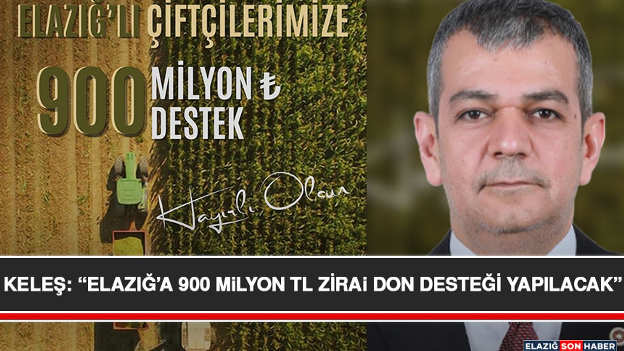 Milletvekili Keleş, yaptığı görüşmeler neticesinde Elazığ’daki çiftçilere yaklaşık 900 milyon TL’lik zirai don ödemesi yapılacağını duyurdu.