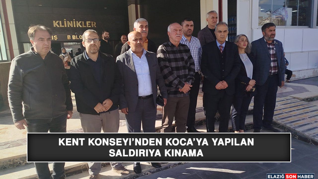 Elazığ Kent Konseyi Yürütme Kurulu Üyeleri, başkan Koca’nın uğradığı silahlı saldırıyı kınamak için Fırat Üniversitesi Hastanesi önünde bir araya geldi. Elazığ Kent Konseyi Yürütme Kurulu Üyesi Suat Kenç burada konsey adına açıklama yaptı.