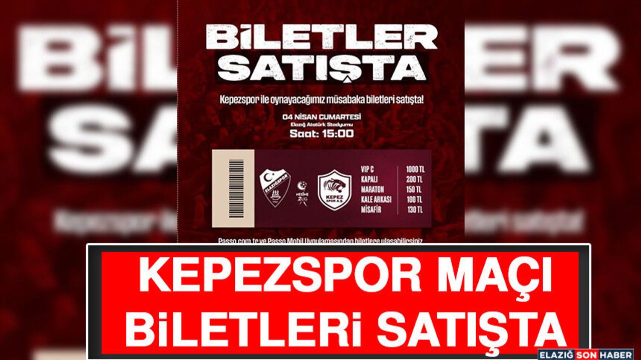 Seza Çimento Elazığspor Kulübü cumartesi günü oynanacak olan Kepezspor karşılaşmasının biletlerini satışa sundu.