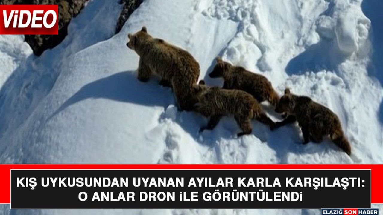Kış uykusundan uyanan bir bozayı ve üç yavrusu, karla kaplı arazide dolaşırken görüntülendi.