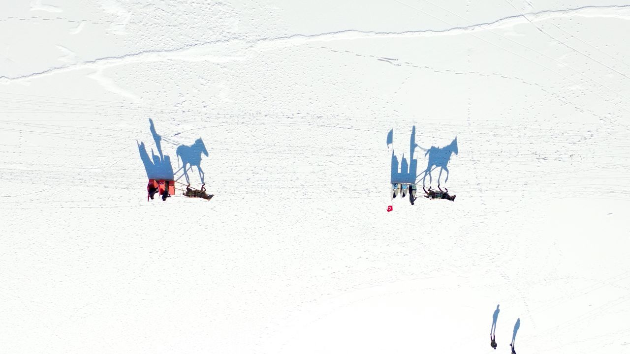 Çıldır Gölü'nde atlı kızakçılık yapan Davut Taşdemir, AA muhabirine, Doğu Anadolu Bölgesi'nin en büyük ikinci gölü Çıldır'da atlı kızak turlarının başladığını söyledi.