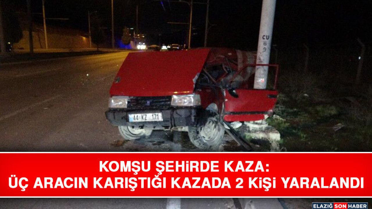 Edinilen bilgilere göre, Elazığ istikametine seyir halinde olan 44 KZ 171 plakalı Tofaş marka otomobil, 01 ADN 277 plakalı araç ve 44 AGP 945 plakalı Volkswagen marka otomobil çarpıştı. Kazada 2 kişi yaralandı.