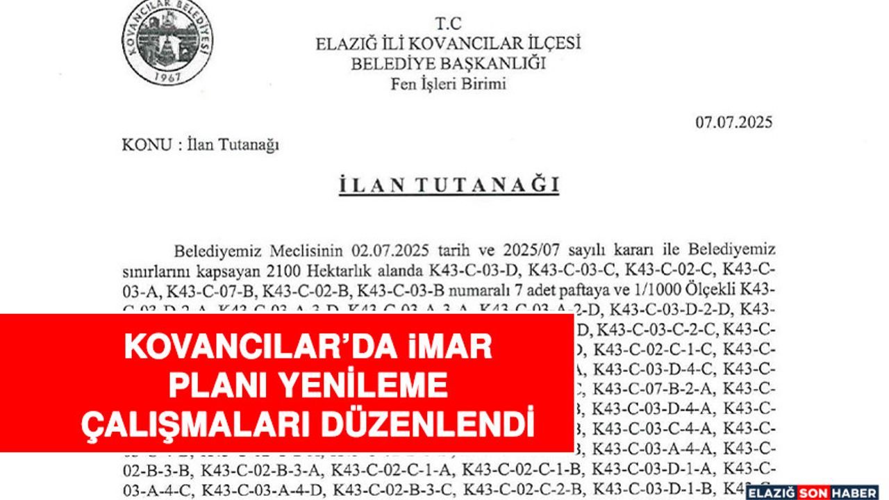 Kovancılar Belediye Başkanı Vahap Gök, Kovancılar ilçesinde imar planı yenileme çalışmalarını tamamladıklarını açıkladı.