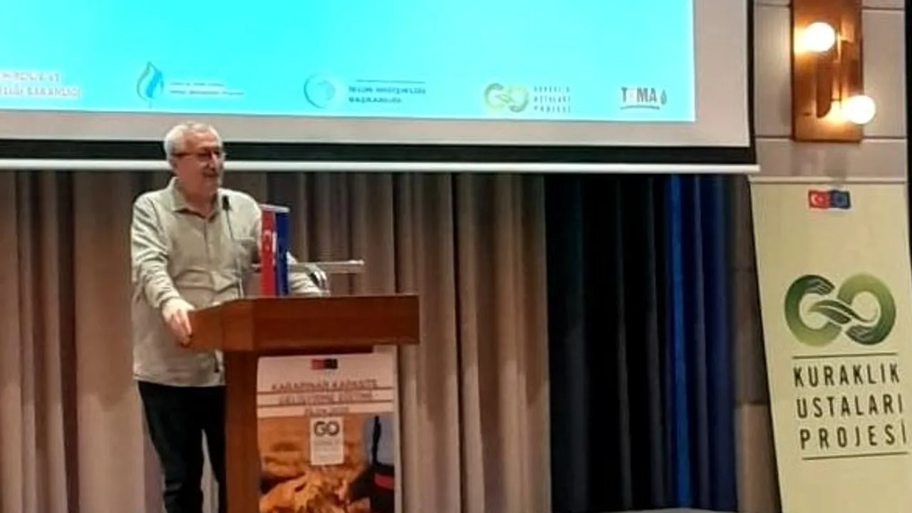 Programın açış konuşmasını yapan TEMA Vakfı Genel Müdür Yardımcısı Dr. Hikmet Öztürk, iklim krizinin proje bölgesinde kuraklıkların sıklığını ve şiddetini artıracağına dikkat çekti. Tarımsal üretimi tehdit eden en büyük risklerden birinin kuraklık olduğunu belirten Dr. Öztürk, bölge halkının geçmişte yaşadığı kuraklık dönemlerinden önemli deneyimler kazandığını; bu süreçlerde edinilen bilgi ve üretim pratiklerinin, bugünün bilimiyle birleştiğinde kuraklıkla mücadelede yol gösterici olacağını ifade etti.