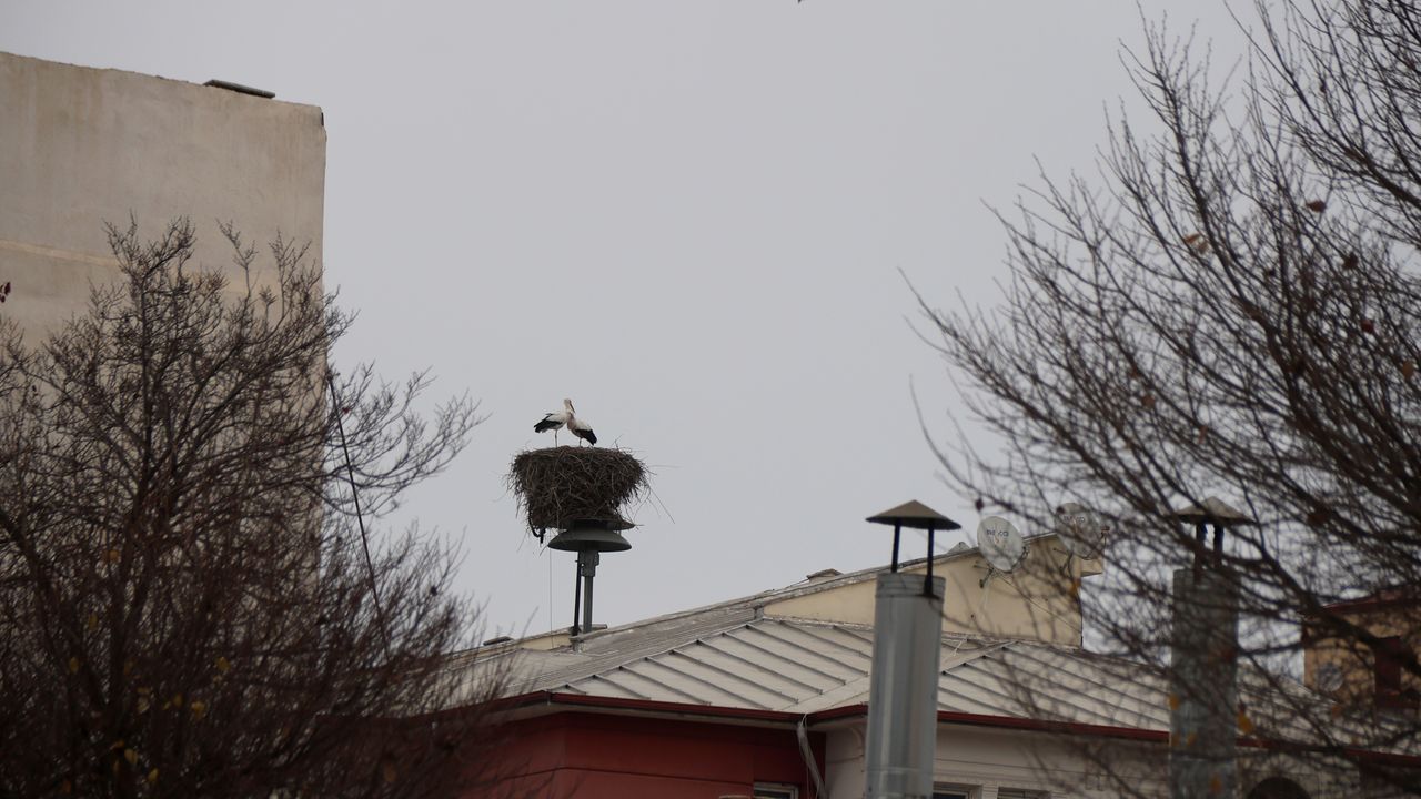 IĞDIR (AA) - Baharın habercisi olarak bilinen leylekler, iklim değişikliğinin etkisiyle Iğdır'daki yuvalarından kış mevsiminde de göç etmedi.