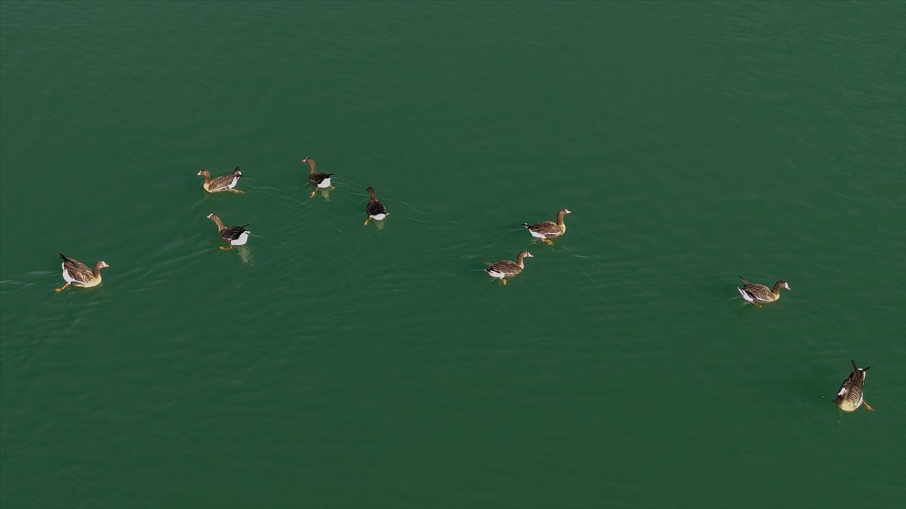 Yaban hayvanlarının daha güvenli ortamda üreme alanı bulduğu göl, yaz mevsimi boyunca konaklayan flamingoların yanı sıra bugünlerde binlerce yaban kazına da ev sahipliği yapıyor.