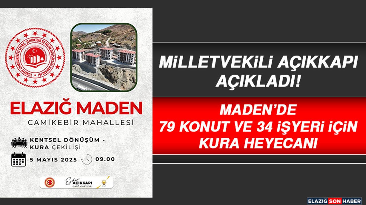 Açıkkapı, 5 Mayıs 2025 Pazartesi günü Maden’de yapımı tamamlanan 79 konut ve 34 işyerinin kurasının gerçekleştirileceğini kamuoyuyla paylaştı.