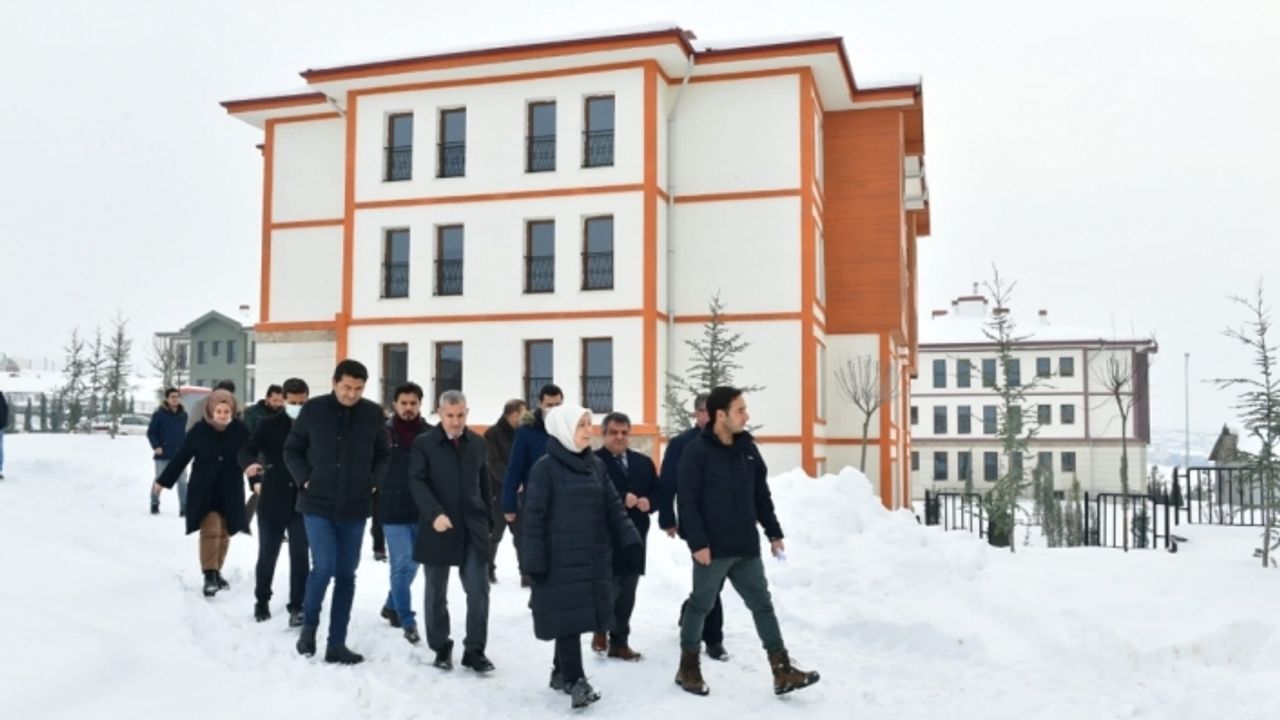 Yeşilyurt ilçesine bağlı Yakınca ve Kaynarca mahallelerinde yapımı tamamlanan TOKİ deprem konutlarında incelemelerde bulunan Çalık, Yeşilyurt Belediye Başkanı Mehmet Çınar, AFAD Malatya İl Müdürü Mustafa Türker, Malatya Çevre, Şehircilik ve İklim Değişikliği İl Müdürü Ali Laloğlu, Çevre, Şehircilik ve İklim Değişikliği Bakanlığı TOKİ İl Sorumlusu Emrah Acar'ın katılımıyla deprem konutlarıyla ilgili gerçekleştirilen toplantıya katıldı.