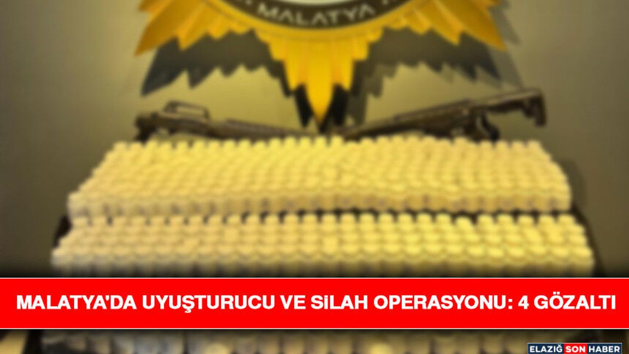 Malatya'da, İl Emniyet Müdürlüğü'ne bağlı İstihbarat, Narkotik Suçlarla Mücadele ile Kaçakçılık ve Organize Suçlarla Mücadele Şube Müdürlüğü ekiplerince uyuşturucu madde ticareti ve silah kaçakçılığına yönelik operasyon düzenlendi. Belirlenen 3 adreste eş zamanlı yapılan aramalarda 27 bin 564 adet sentetik ecza, 4 adet ruhsatsız tabanca, 2 adet ruhsatsız tüfek ile 93 adet fişek ele geçirildi.