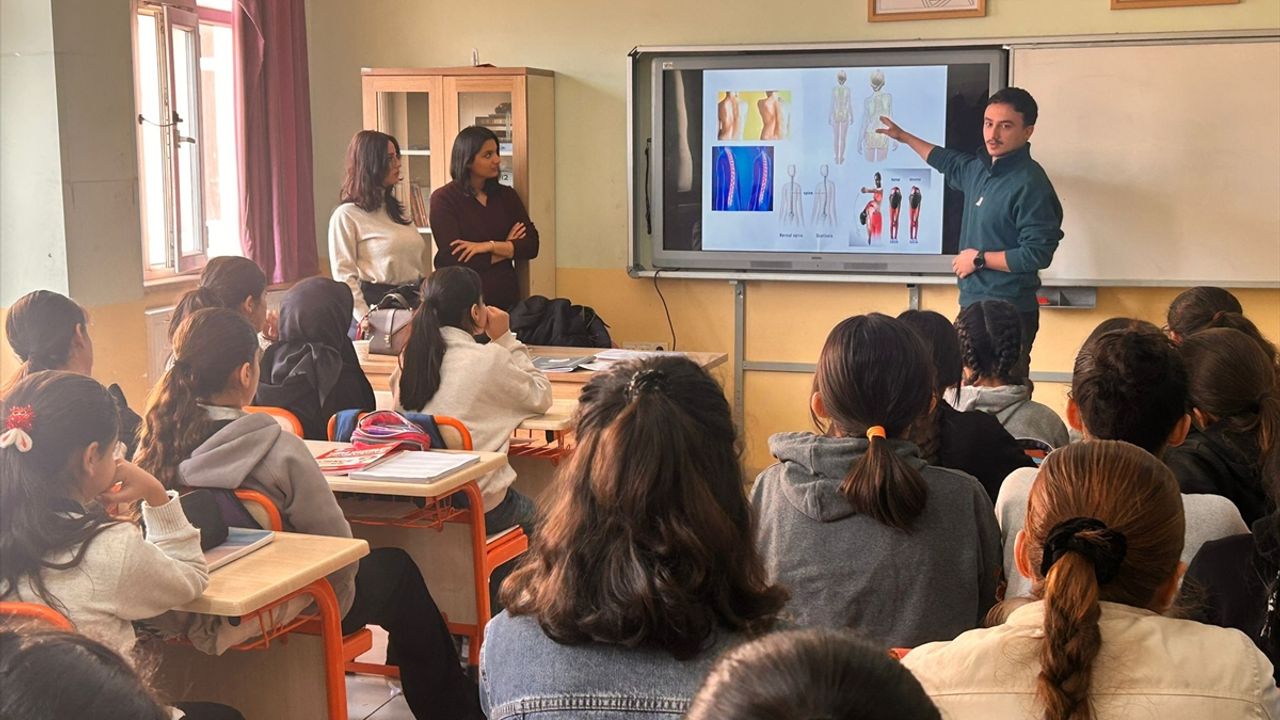 Burada tarama yapan ekipler, hastalıkla ilgili öğrencilere ve öğretmenlere bilgi verdi.