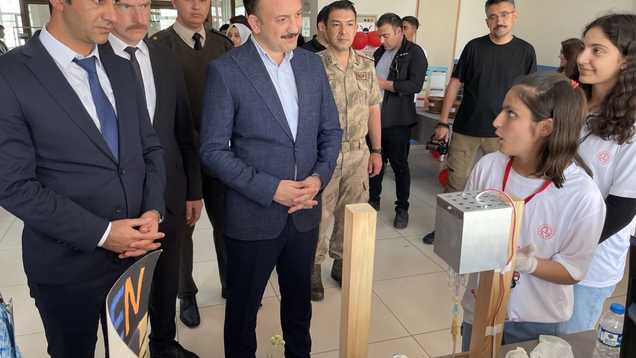 Fuarın açılışını yapan Kaymakam Göksu Bayram, projeleri inceledi, öğrencilerden bilgi aldı.