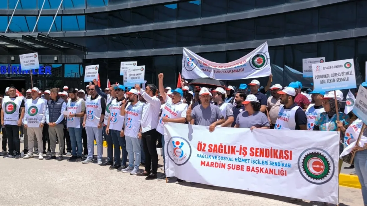 Mardin Eğitim ve Araştırma Hastanesi Başhekimlik girişi önünde gerçekleştirilen basın açıklamasına Mardin Öz Sağlık İş Şube Başkanı Şehmus Tedik, Mardin Hak iş İl Başkanı Aziz Adibelli, Şanlıurfa bir Nolu Şube Başkanı Seydi Eyüboğlu, Şanlıurfa iki Nolu Şube başkanı Bozan İzol , Özgüven Sen İl Başkanı Özgür Çavlı ve sağlık çalışanları katıldı.