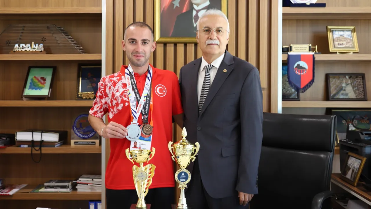 Mardin Büyükşehir Belediyesi Gençlik ve Spor Hizmetleri Dairesi Başkanı Doğan Ağalday’da Alkanoğlu’nu kabul etti ve başarılarını kutladı.