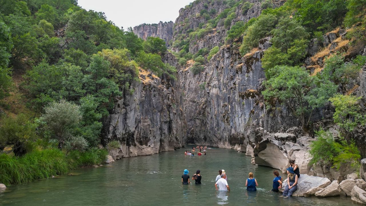 Kato Dağı'nın eteklerinde, sarp kayalıklarla çevrili kanyona gelen doğaseverler, hem doğayla iç içe zaman geçiriyor hem de dik kayalar arasındaki kanyonda kendilerini berrak sulara bırakarak serinleme fırsatı buluyor.