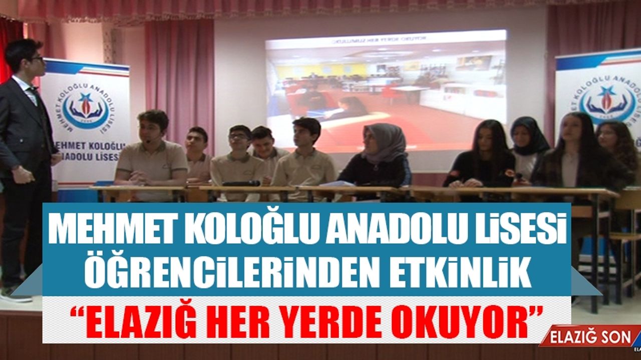 Elazığ Valiliği’nin himayelerinde İl Milli Eğitim Müdürlüğü tarafından başlatılan “Elazığ Her Yerde Okuyor” projesi kapsamında Mehmet Koloğlu Anadolu Lisesindeki öğrenciler okuma alışkanlığının topluma kazandırılması için etkinlik düzenledi.
