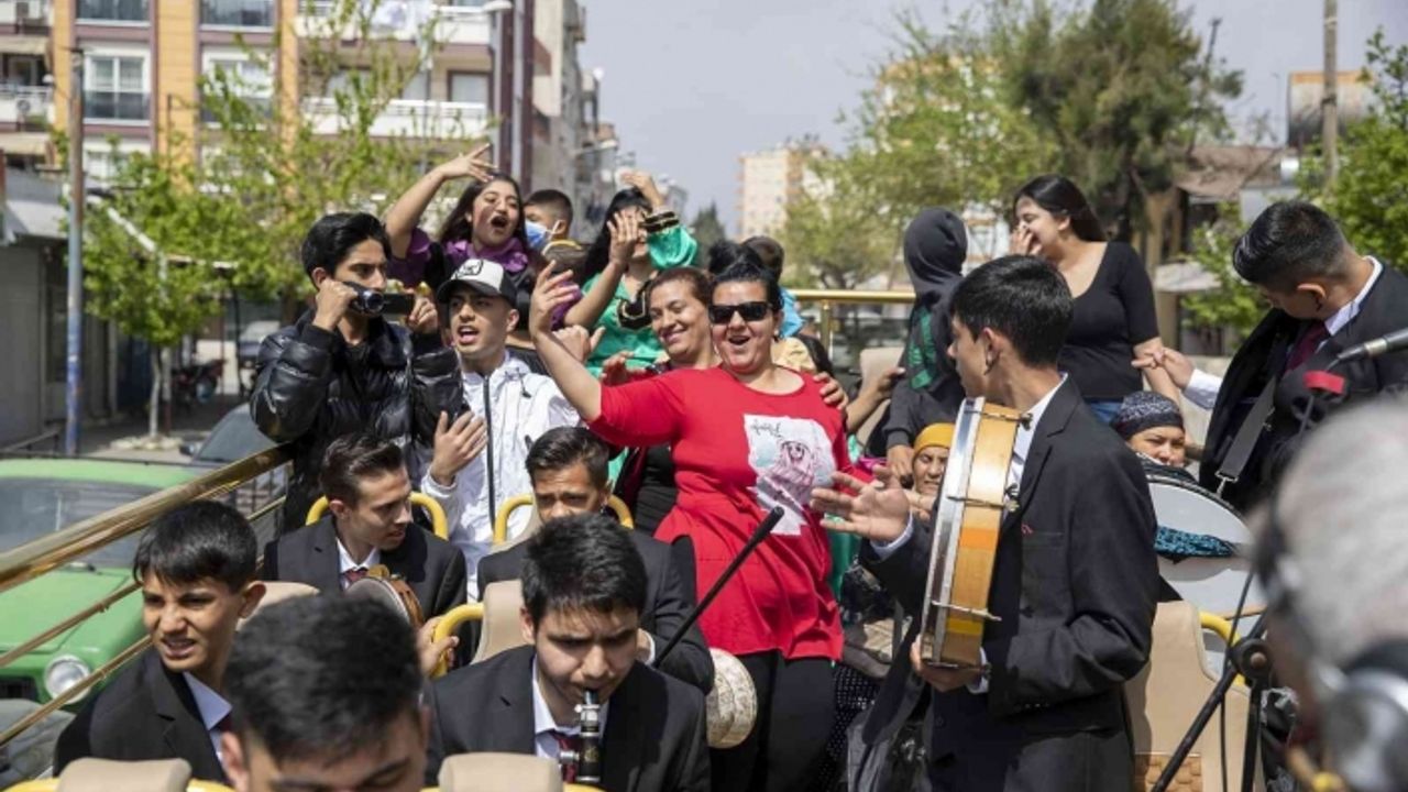 Mersin’de yoğun olarak Akdeniz ilçesi Turgutreis Mahallesi’nde yaşayan Roman vatandaşlar, Büyükşehir Belediyesi Kültür ve Sosyal İşler Dairesi’nin organizasyonuyla kent turu attı. Üstü açık otobüslere binen Romanlar, geleneksel kıyafetleri ve çaldıkları şarkılarla Mersin sokaklarını renklendirdi. Turgutreis Mahallesi’nden kalkan otobüsler Adnan Menderes Bulvarı’nı baştan sona turladı. Romanlar zaman zaman otobüsleri durdurup Kültür Park’ın çimlerinde dans etti. Çevredeki vatandaşlar ise söylenen şarkılara eşlik ederken, o dakikaları telefon kameralarıyla ölümsüzleştirdi.