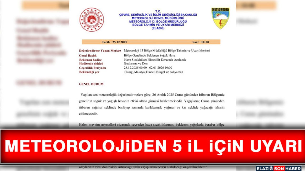 Meteoroloji 13. Bölge Müdürlüğü’nden yapılan uyarıda, "Yapılan son meteorolojik değerlendirmelere göre; 26 Aralık 2025 Cuma gününden itibaren Bölgemiz genelinin soğuk ve yağışlı havanın etkisi altına girmesi beklenmektedir. Yağışların; Cuma gününden itibaren yağmur şeklinde başlayıp zamanla karlakarışık yağmur ve kar şeklide yağacağı tahmin edilmektedir. Halen mevsim normalleri civarında seyreden hava sıcaklıklarının, beklenen yağışlarla beraber bölge genelinde hissedilir derecede (3 ila 7 derece) azalacağı tahmin edilmektedir. Soğuk havanın Bölgemiz genelinde önümüzdeki hafta boyunca da etkisini sürdürmesi beklenmektedir. Bu süreçte; özellikle gece ve sabah saatlerinde sıcaklıkların düşmesine bağlı olarak buzlanma ve don olaylarının görülebileceği, buna bağlı olarak kara, hava ve deniz ulaşımında aksamalar yaşanabileceği değerlendirilmektedir. Ayrıca, tarımsal faaliyetlerin devam ettiği bölgelerde soğuk hava ve don olaylarının zirai don riskini artıracağı, ürün kayıplarına neden olabileceği öngörülmektedir. Çevre, Şehircilik ve İklim Değişikliği Bakanlığı Meteoroloji Genel Müdürlüğü tarafından hazırlanıp yayınlanacak olan tahmin ve meteorolojik erken uyarıların takip edilmesi önem arz etmektedir" denildi.