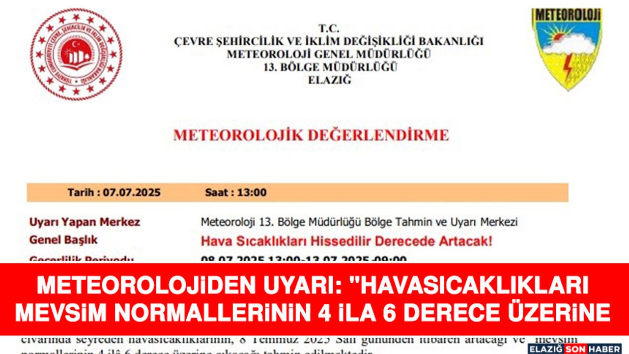 Meteoroloji 13. Bölge Müdürlüğü’nden yapılan açıklamada, "Yapılan son meteorolojik değerlendirmelere göre; bölgemiz genelinde mevsim normalleri civarında seyreden hava sıcaklıklarının, 8 Temmuz 2025 Salı gününden itibaren artacağı ve mevsim normallerinin 4 ila 6 derece üzerine çıkacağı tahmin edilmektedir.