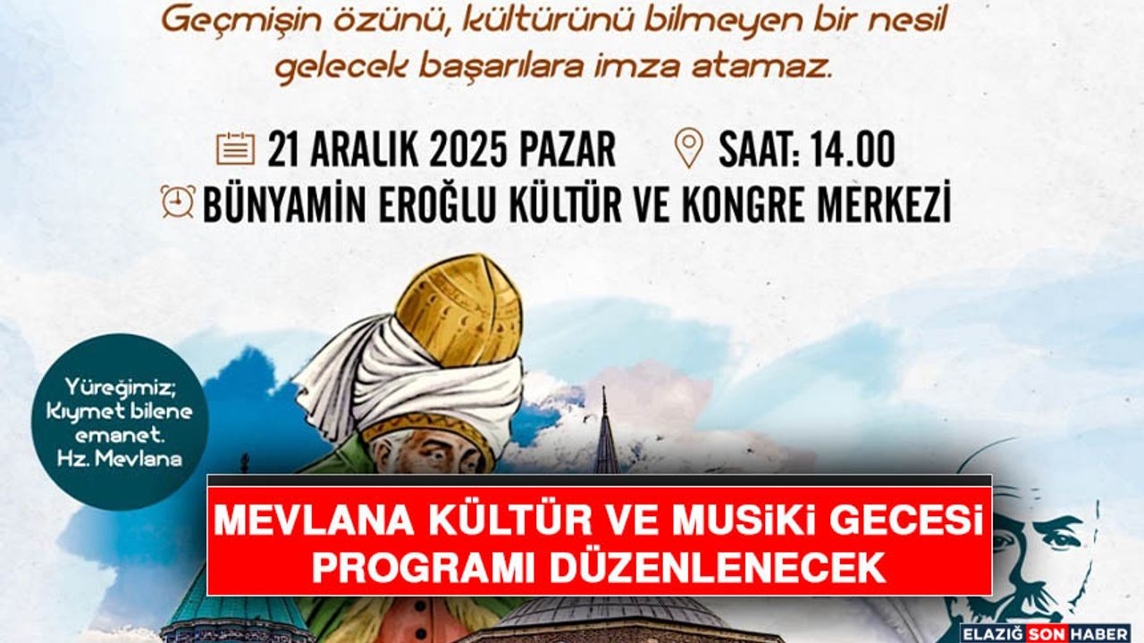 Elazığ Belediyesi ile Özel İlk Adımlar Çocuk Akademisi tarafından ortaklaşa olarak Mevlana Haftası dolayısıyla, “Geçmişin özünü, kültürünü bilmeyen bir nesil; gelecek başarılara imza atamaz.” teması ile Mevlana Kültür ve Musiki Gecesi programı düzenleyecek.