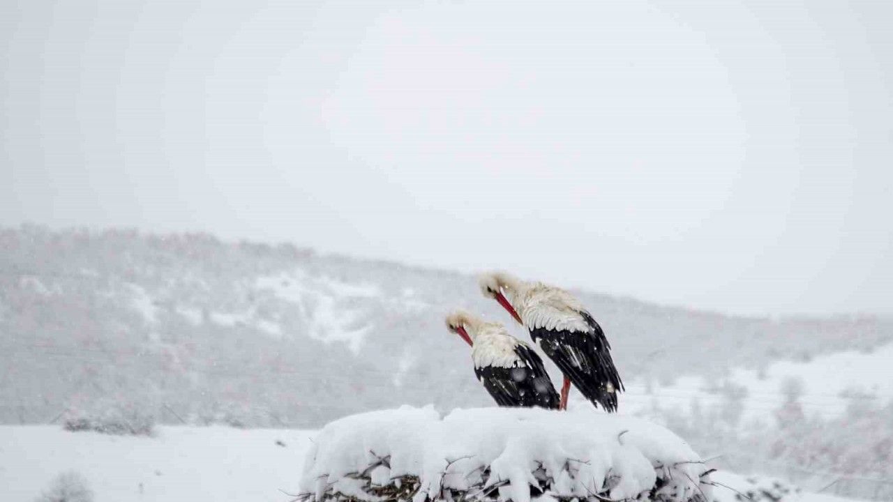 Baharın müjdecisi olarak adlandırılan leylekler, küresel ısınmayla birlikte adeta mevsimleri şaşırdı. Erkenden yola çıkan ve Bingöl’deki yuvalarına dönen leylekler, karla karşılaştı. Yuvalarının üzerindeki karla karşılaşan leylekler, büyük şaşkınlık yaşadı. O anlar ise doğa fotoğrafçısı ve öğretmen Saim Çakar tarafından görüntülendi.