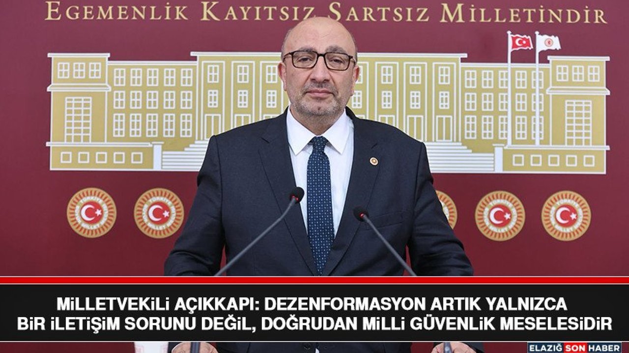AK Parti Elazığ Milletvekili Ejder Açıkkapı, son dönemde artan bilgi kirliliğinin yalnızca bireysel yanlış anlaşılmalardan ibaret olmadığını, aksine toplumun huzurunu, kamu düzenini ve devlet-millet arasındaki güven ilişkisini hedef alan sistematik bir tehdit haline geldiğini vurguladı.