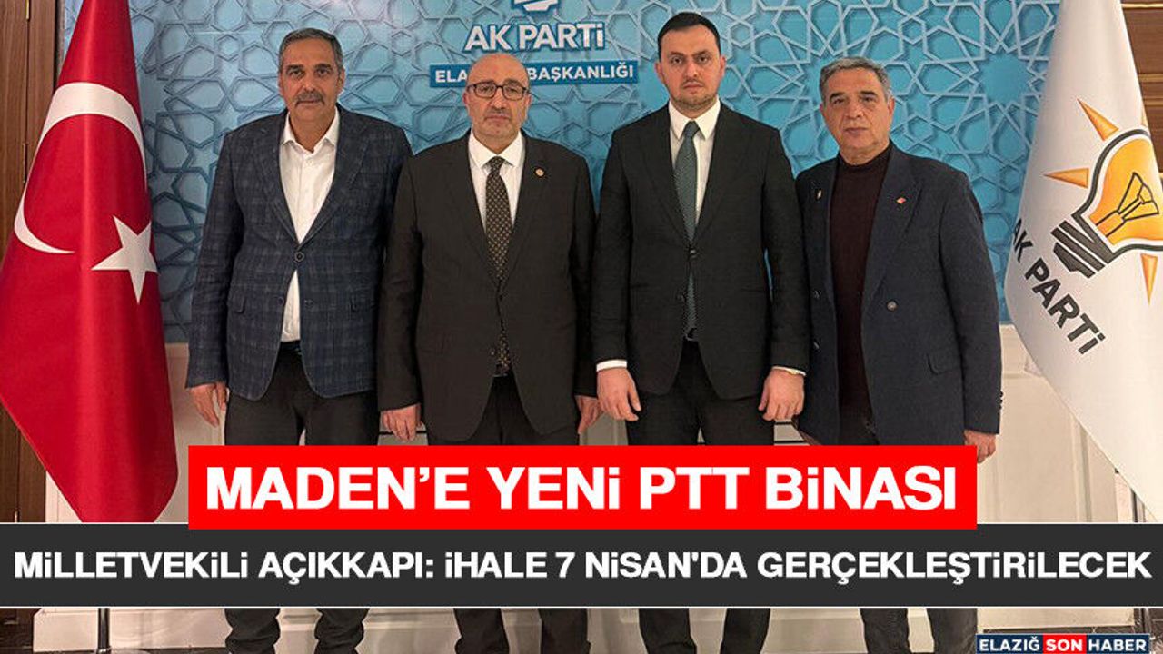 Milletvekili Açıkkapı yaptığı açıklamada, PTT Yapı Daire Başkanlığı tarafından yürütülen çalışmalar neticesinde Maden ilçesine kazandırılacak yeni PTT hizmet binasının ihale aşamasına getirildiğini belirterek, sürecin 7 Nisan tarihinde yapılacak ihale ile resmen başlayacağını ifade etti.