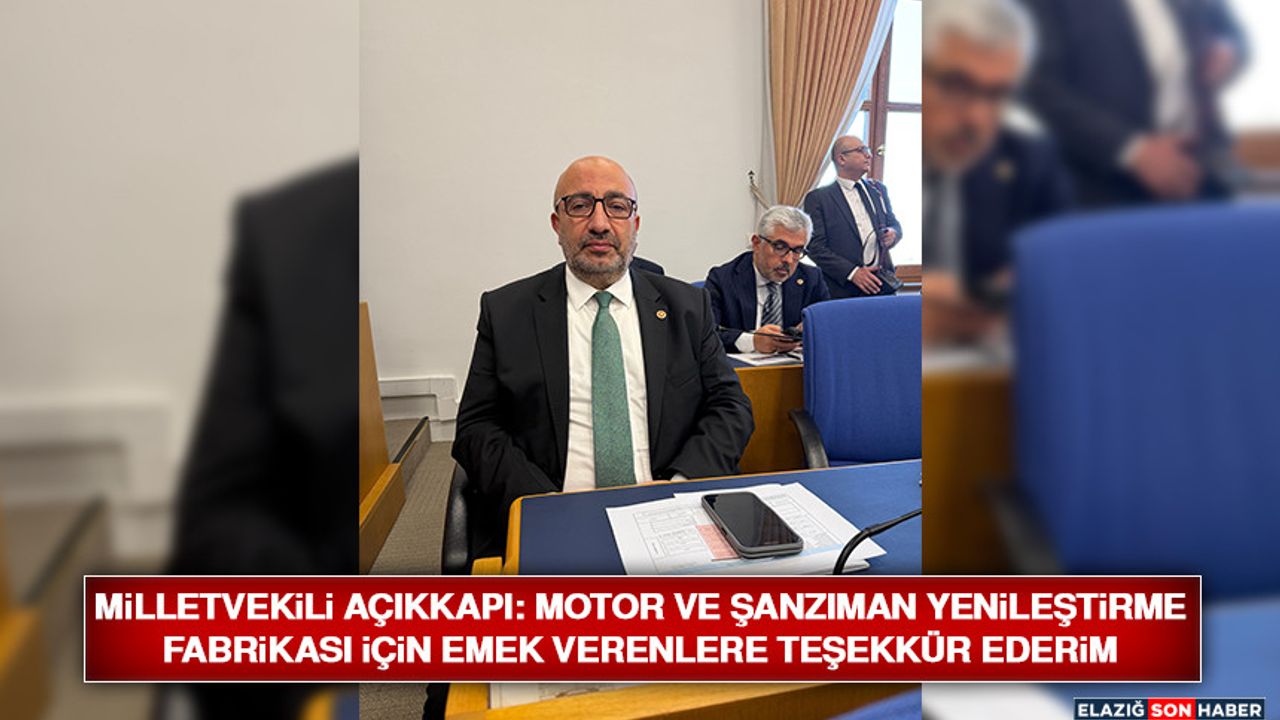 Milletvekili Açıkkapı konuşmasında Türk Silahlı Kuvvetlerinin gelişimi ve çalışmalarına yönelik iddialara yanıt verdi. Açıkkapı, Elazığ’da temeli atılan Motor ve Şanzıman Yenileştirme Fabrikası’nın kurulmasına öncülük eden herkese teşekkür etti.