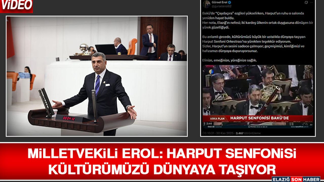 CHP Elazığ Milletvekili Gürsel Erol, Harput Senfoni Orkestrası’nın Bakü’de gerçekleştirdiği tarihi konser sonrası yaptığı açıklamayla orkestraya güçlü bir destek mesajı verdi.