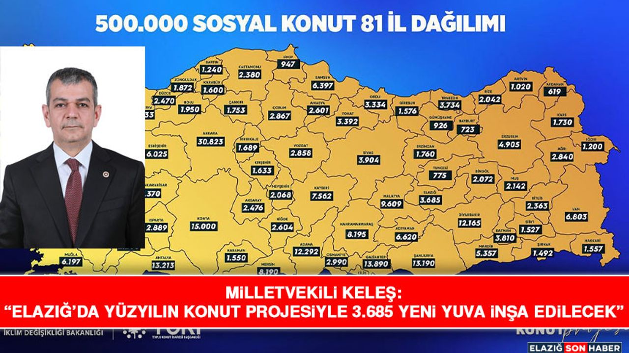 AK Parti Elazığ Milletvekili Prof. Dr. Erol Keleş, projeye ilişkin yaptığı açıklamada Elazığ’ın her alanda olduğu gibi konut yatırımlarında da Türkiye Yüzyılı vizyonunun güçlü bir parçası olduğunu vurguladı.