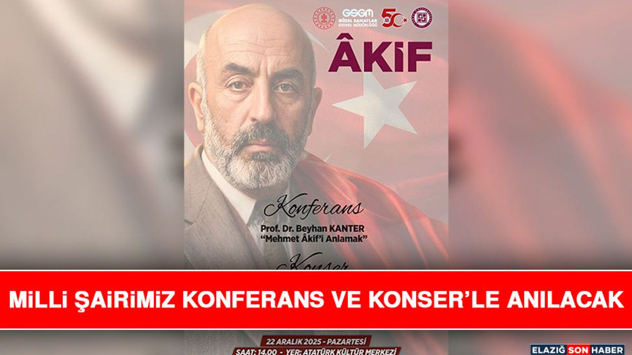 Fırat Üniversitesi ve Elazığ Devlet Klasik Türk Müziği ve Kürsübaşı Topluluğu tarafından “Mehmet Âkif’i Anlamak” konulu konferans ile “Mehmet Âkif Ersoy’un Bestelenmiş Şiirleri” adlı konser gerçekleştirilecek.